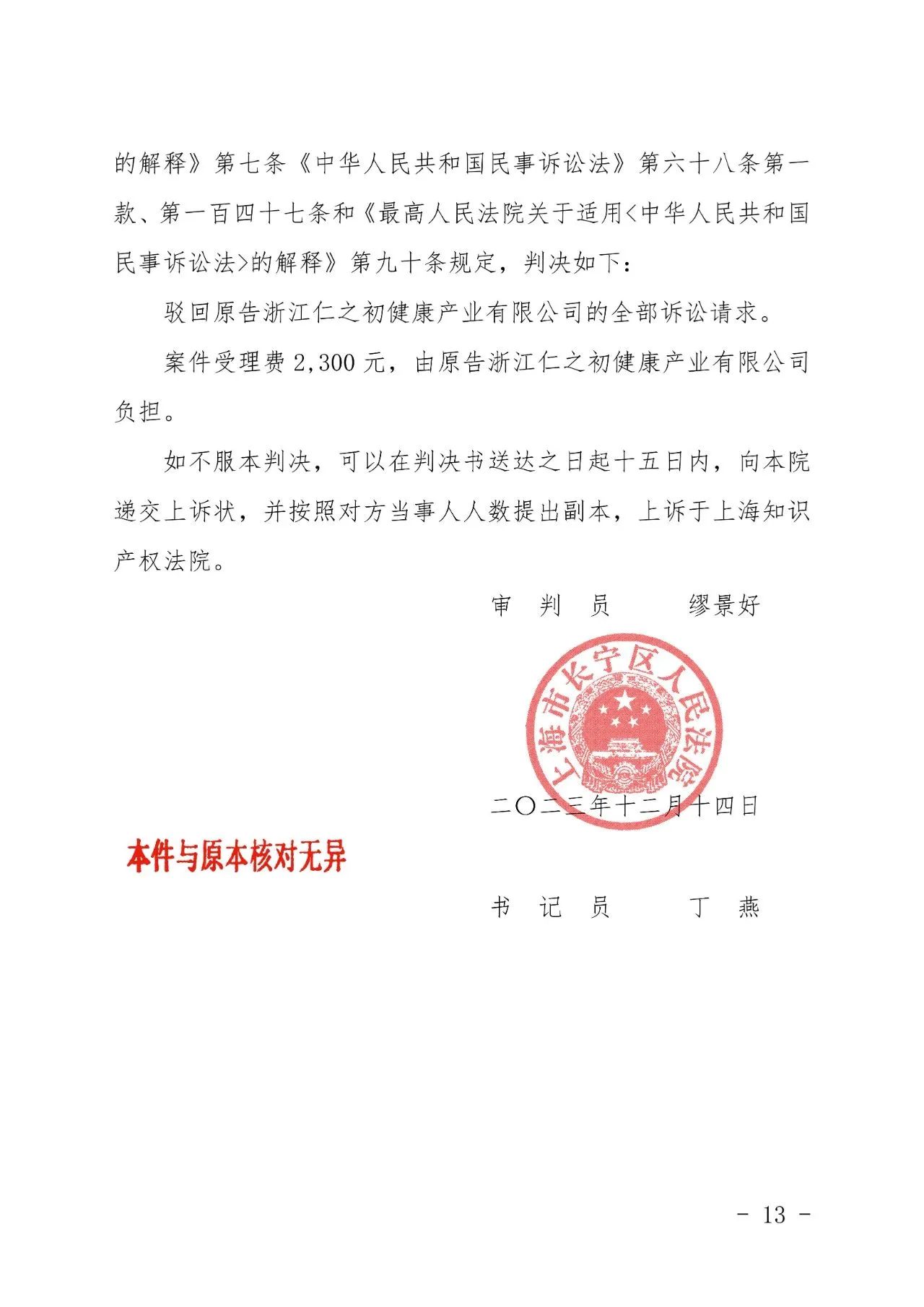 商洛辉知胜诉佳讯 | “仁之初健康”著作权及不正当竞争纠纷案,法院:驳回全部诉讼请求!