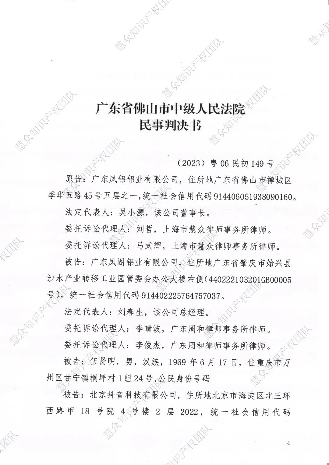 商洛判赔800万!辉知队代理“凤铝”商标维权案胜诉